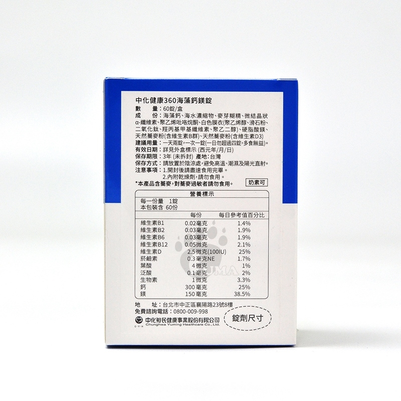 內容物名稱:海藻鈣、海水濃縮物、麥芽糊精……詳見外包裝標示
