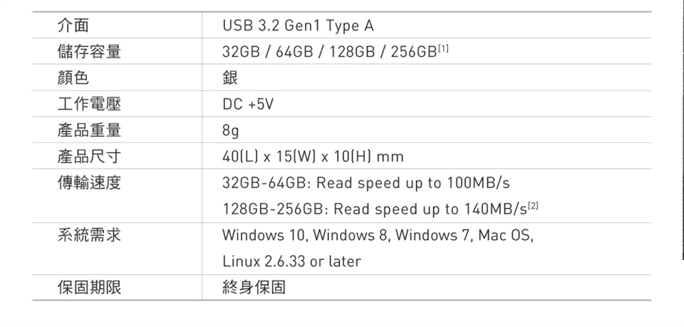 傳輸速度 32GB-64GB: Read speed up to 100MB/s