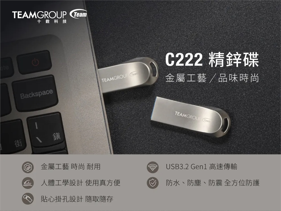 TEAM 十銓 USB3.2精鋅碟 金屬隨身碟 (防水+防塵+終身保固) TC2223128GS01