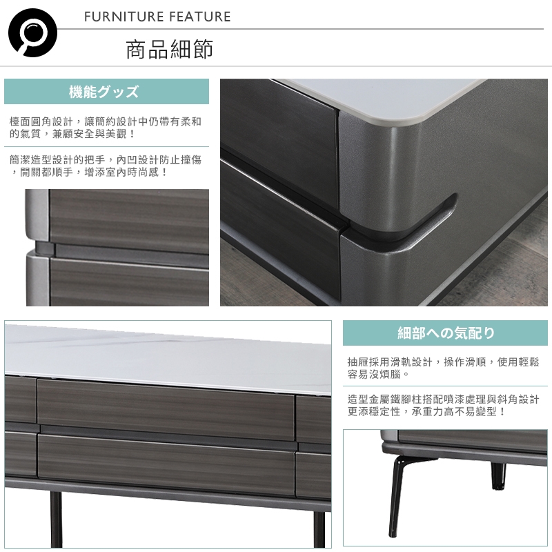 抽屜採用滑軌設計,拉合操作滑順,使用輕鬆容易!