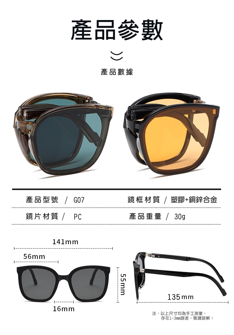seoul show首爾秀 折疊彈簧腿方圓框男女太陽眼鏡UV400墨鏡 G07