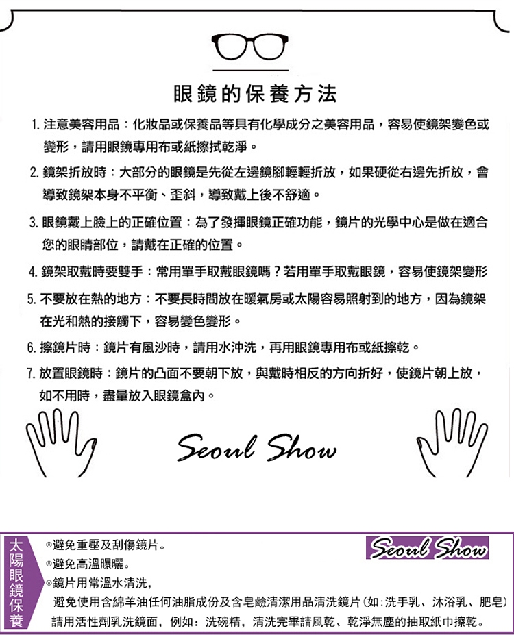 避免使用含綿羊油、任何油脂成份等含皂鹼清潔用品清洗鏡片(洗手乳、沐浴乳、肥皂),