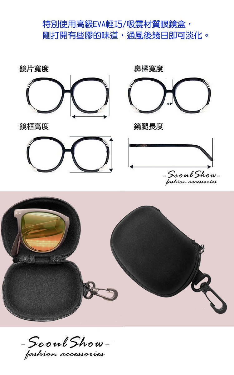 3,特別使用高級EVA輕巧/吸震材質眼鏡盒,剛打開有些膠的味道,通風後幾日即可淡化。