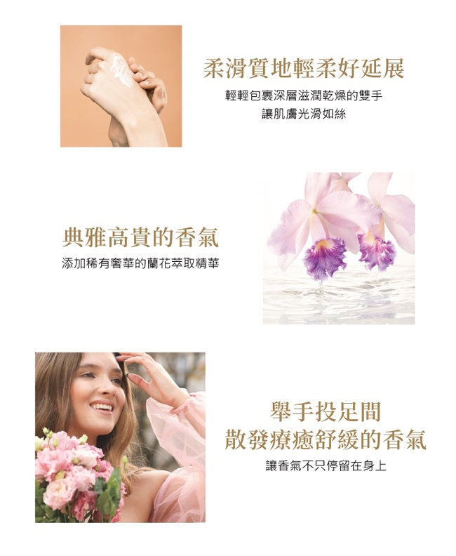 典雅高貴的嘉德麗雅蘭花香,搭配明亮卻不失溫婉的木蘭香,