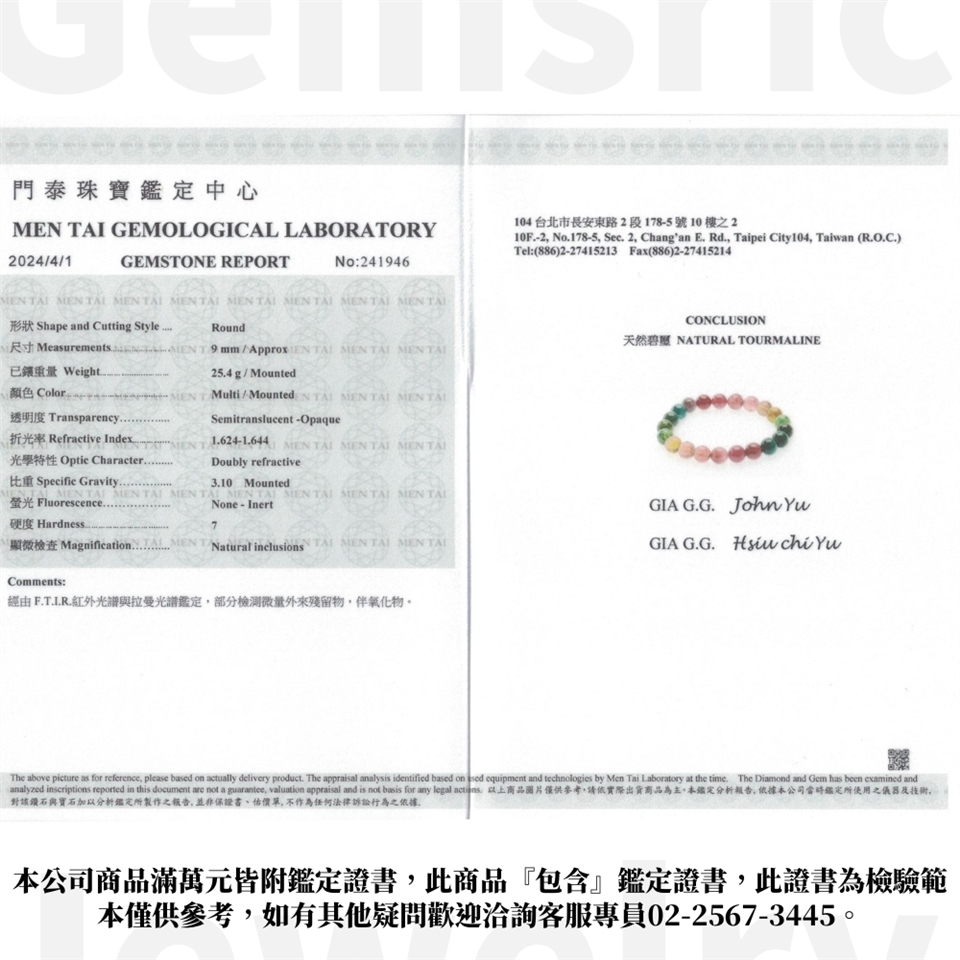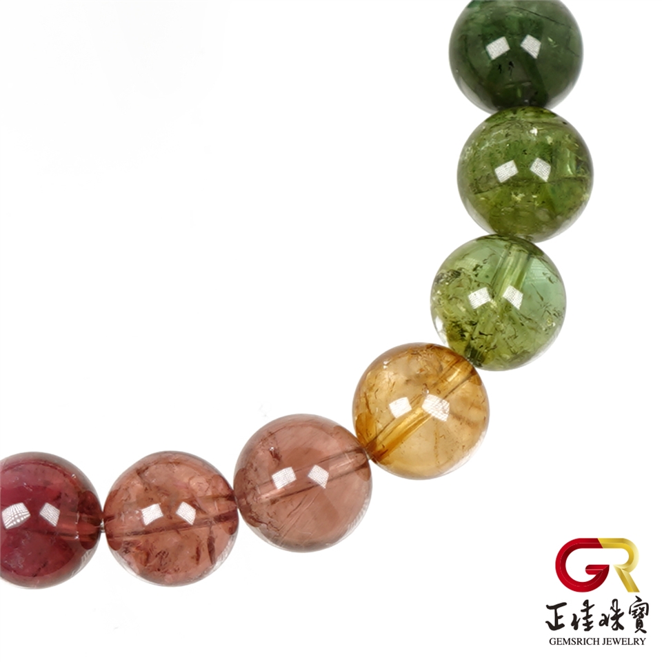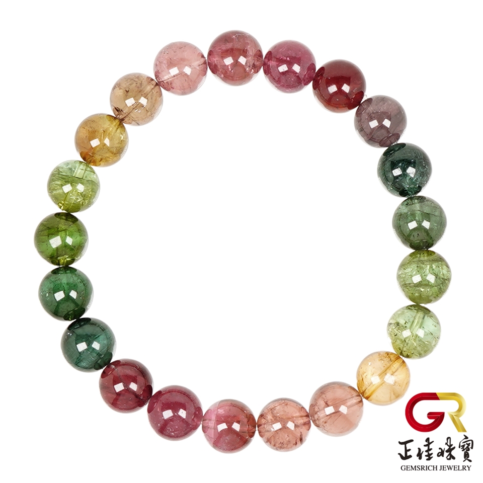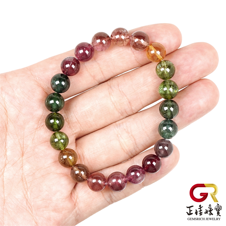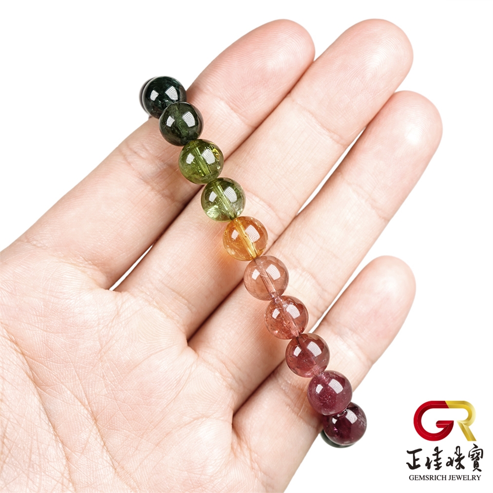 彩碧璽 頂級蒐藏級彩虹漸層碧璽 8.8-9.3mm 彩碧璽手珠|日本彈力繩