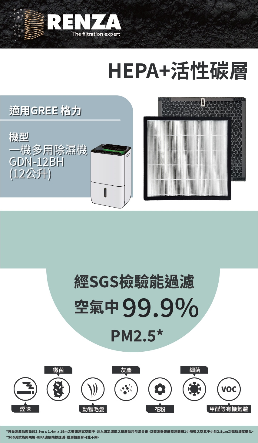 RENZA  高效HEPA濾網+活性碳濾網