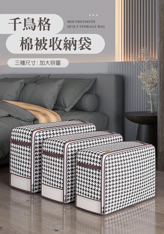 ◆ 商品名稱:扁方形款千鳥格棉被收納袋