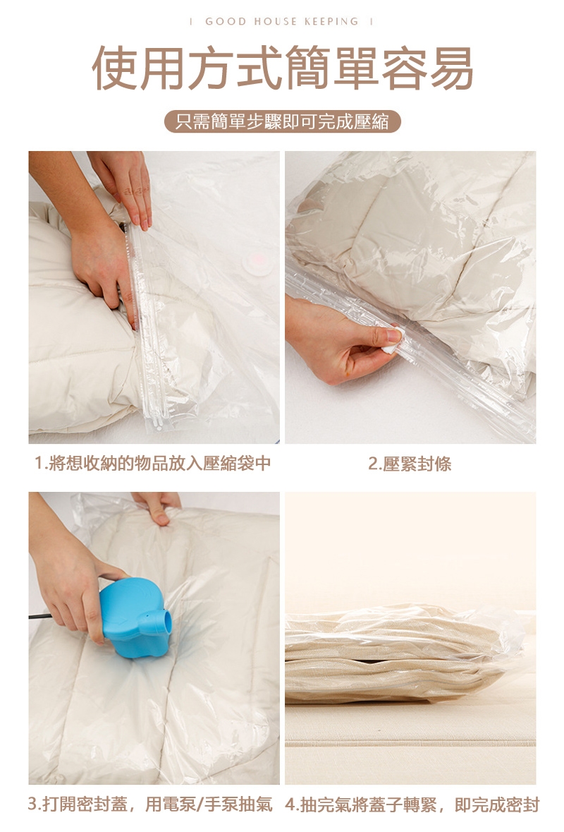◆手動式泵浦,將空氣抽乾較徹底及容易