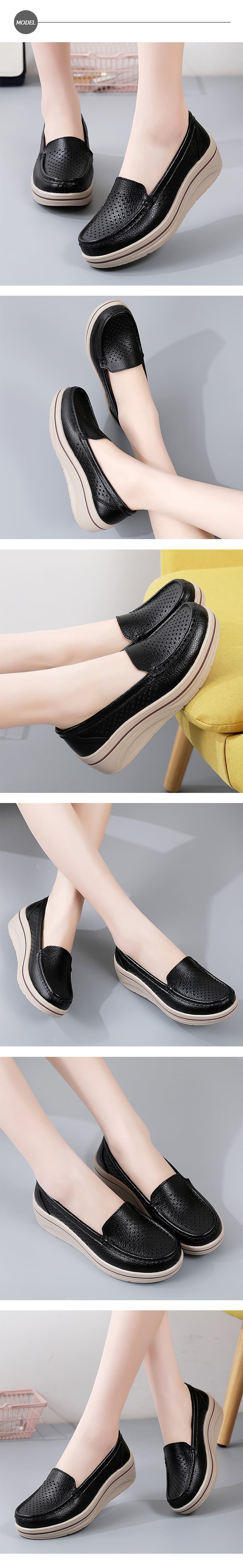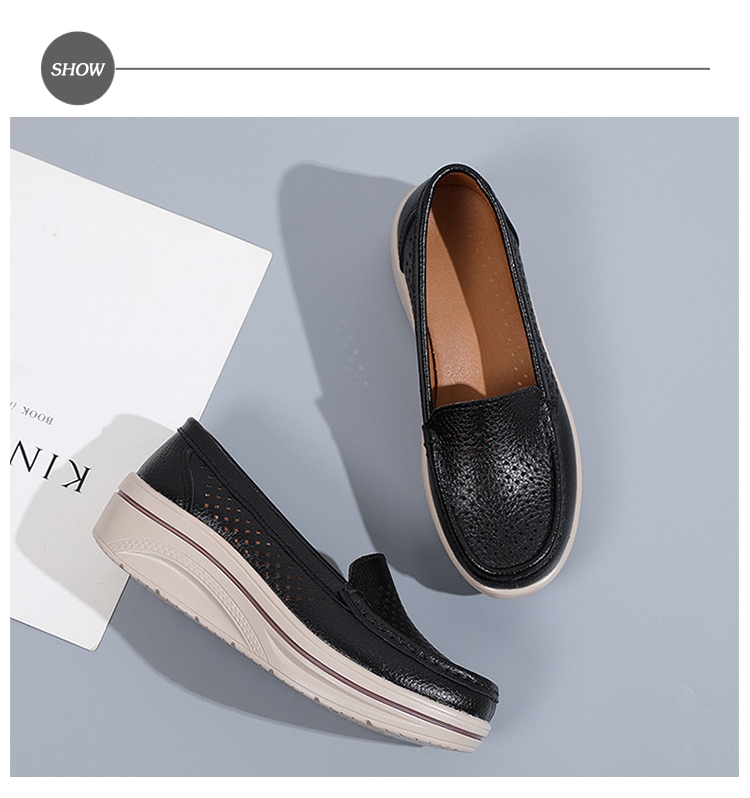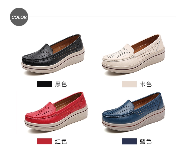 【MOM】真皮純色厚底樂福鞋/真皮純色氣質縷空沖孔百搭坡跟厚底樂福鞋 女鞋 黑