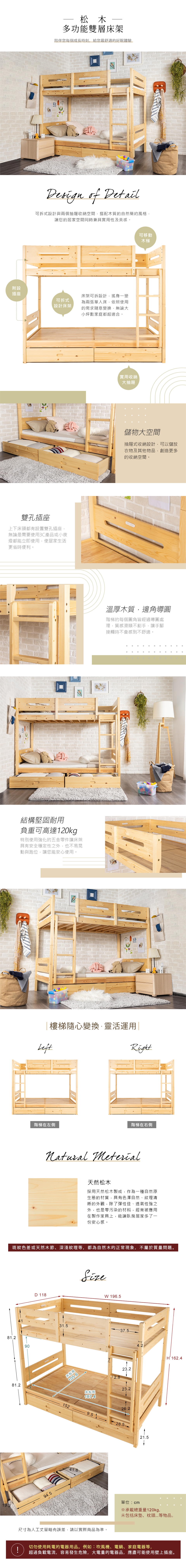 雙層床舖不適合6歲以下兒童使用,避免造成跌落受傷的危險。