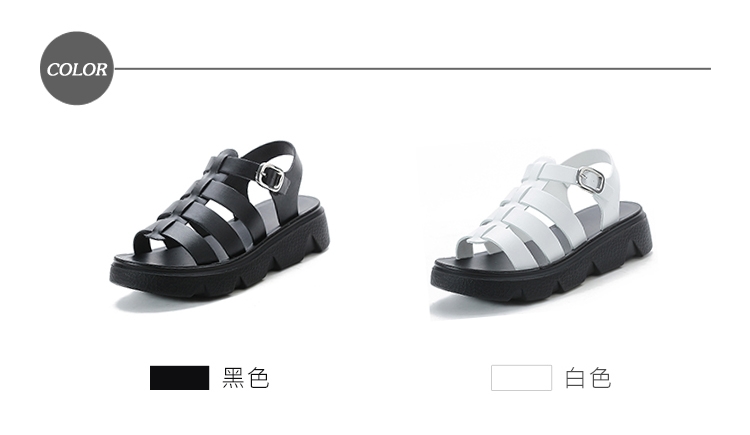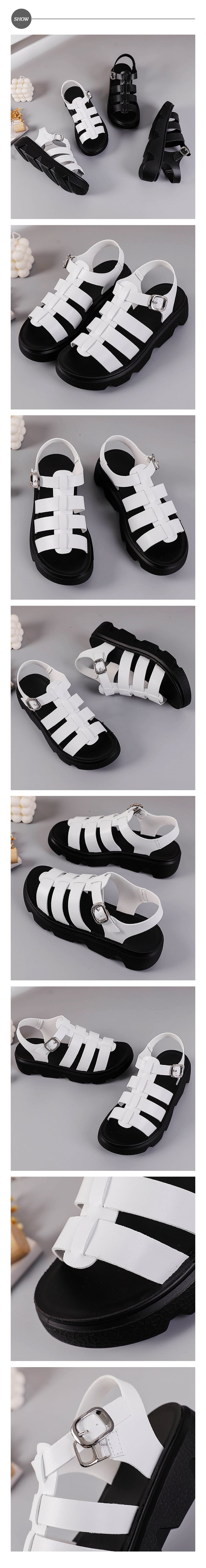 【MOM】真皮厚底羅馬涼鞋/真皮百搭復古潮流厚底羅馬涼鞋 女鞋 白