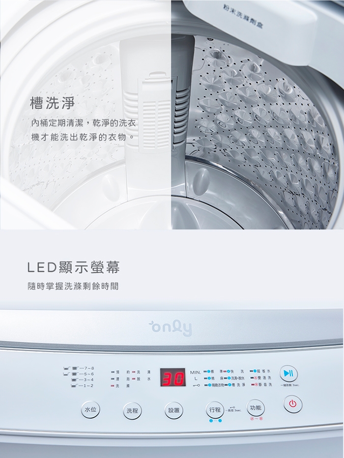 3.為達到最佳洗淨效果,衣物洗滌重量請控制在空間的8成 ,並請勿超過原廠標示的容量。