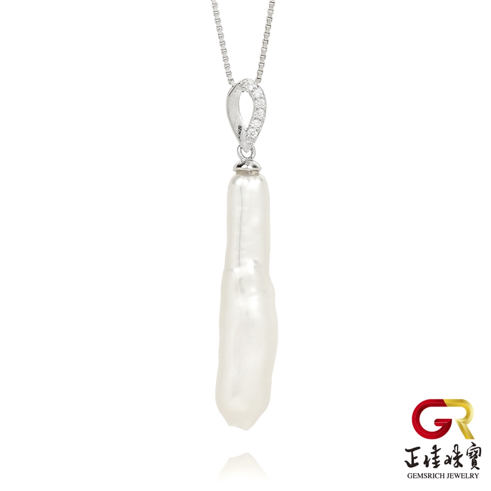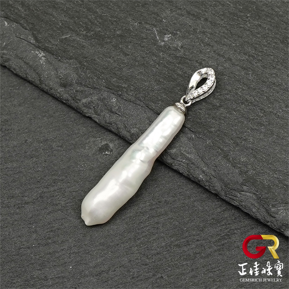 天然淡水珍珠 頂級巴洛克珍珠 長型巴洛克珍珠 異形珍珠 珍珠吊墜|925銀方晶鋯石