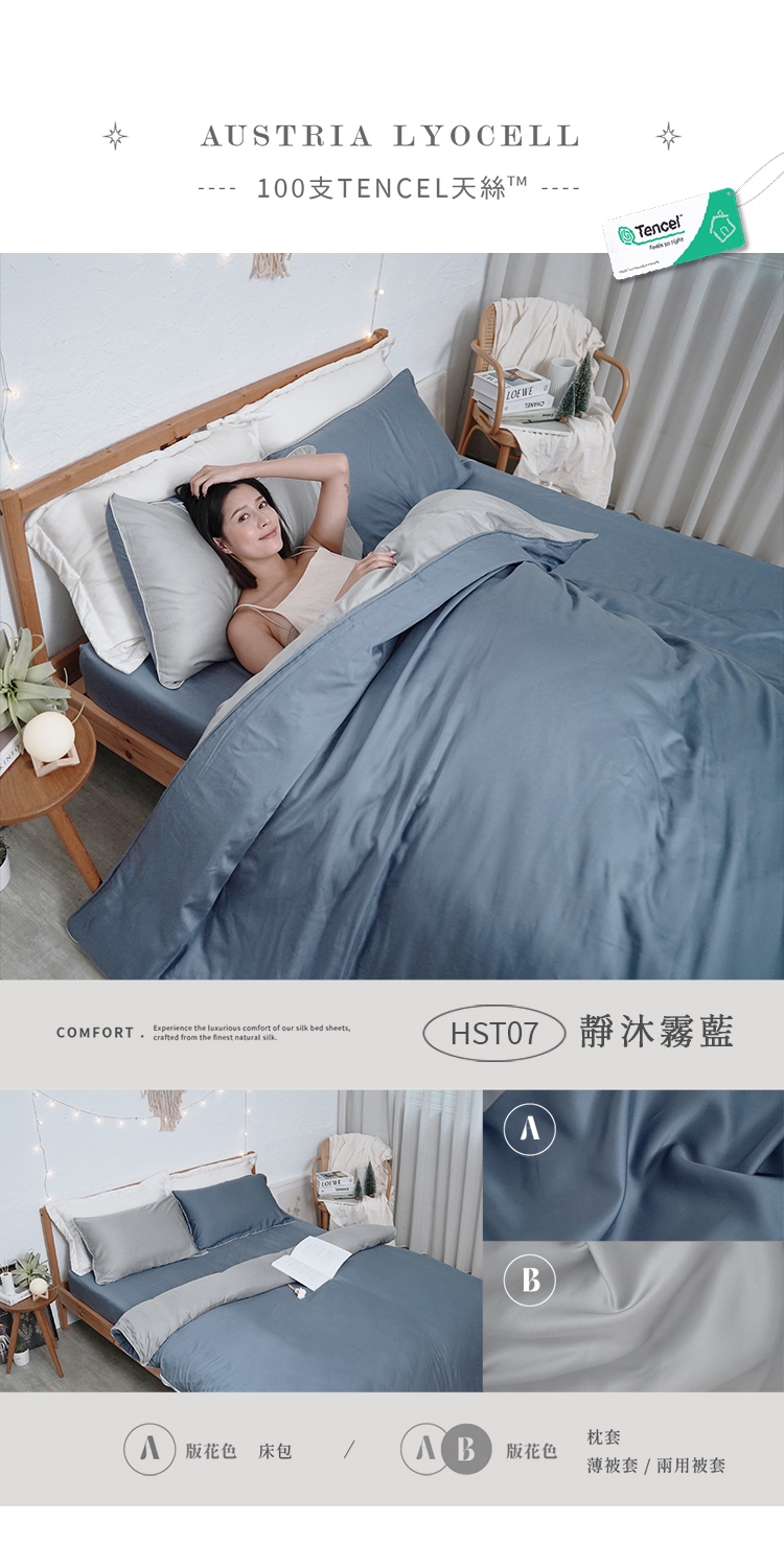 ◇尺寸:單人薄床包-3.5×6.2尺(105×188公分)±3%/可包覆床墊厚度:約35公分±3%;雙人鋪棉兩用被套-6×7尺(182×212公分)±3%;信封枕套-45×75公分±3%