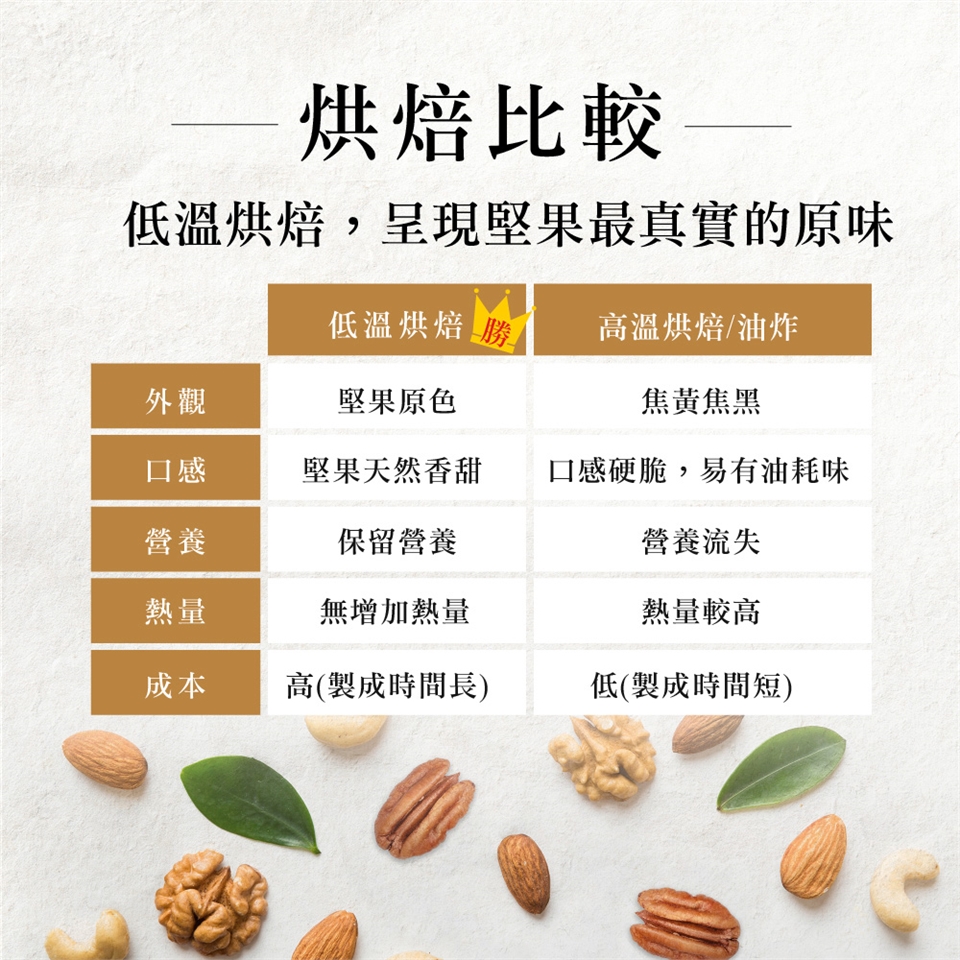 ★低溫烘培技術,保留堅果的原味,自然呈現堅果最原始的清甜滋味