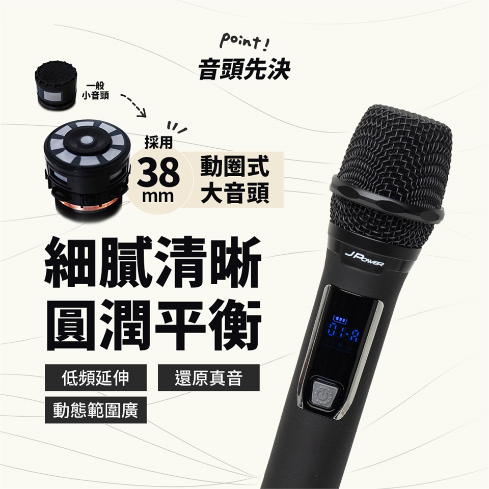 ◆ 專業級麥克風採用38mm動圈式大音頭