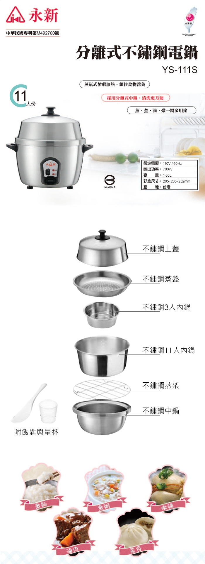 ◎全不鏽鋼分離式電鍋,安全耐用*鍋蓋.內鍋.中鍋:304不鏽鋼*機身外殼:430不鏽鋼