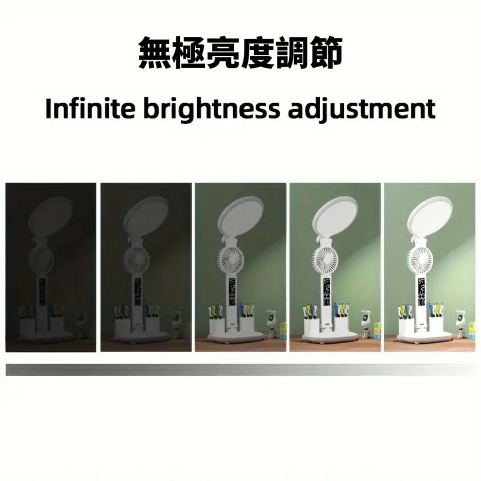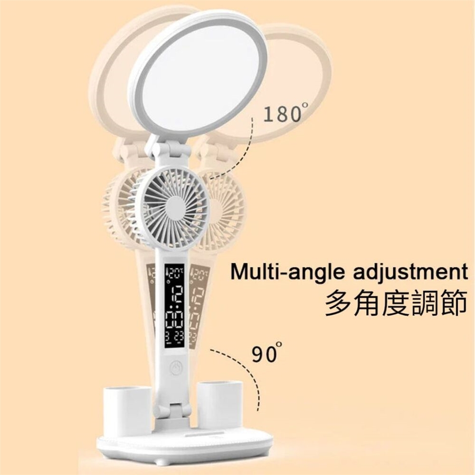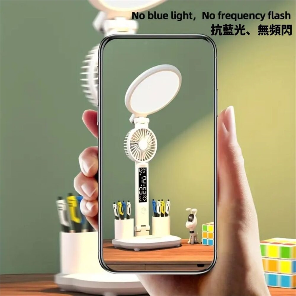 多功能設計:整潔筆架、手機支架和迷你風扇,提升桌面使用便利性。