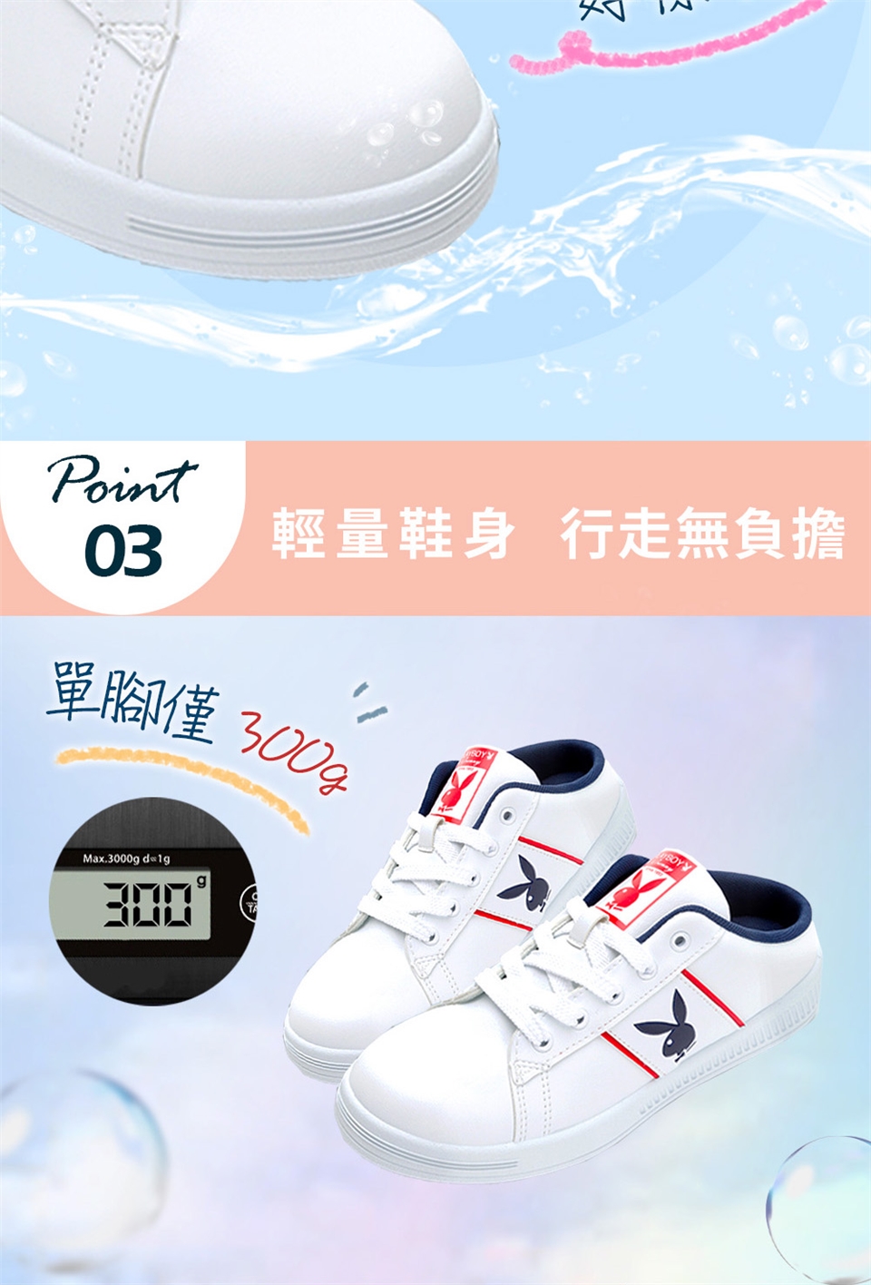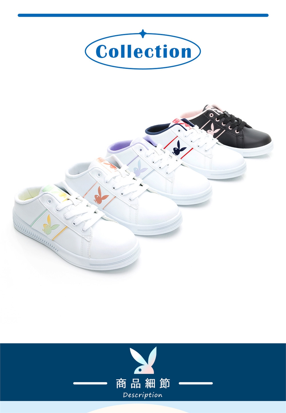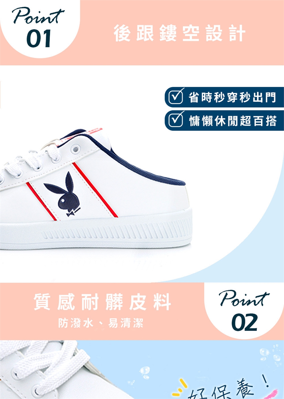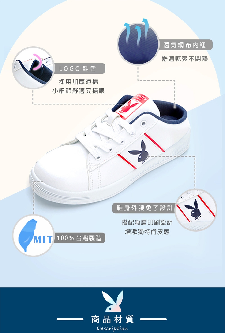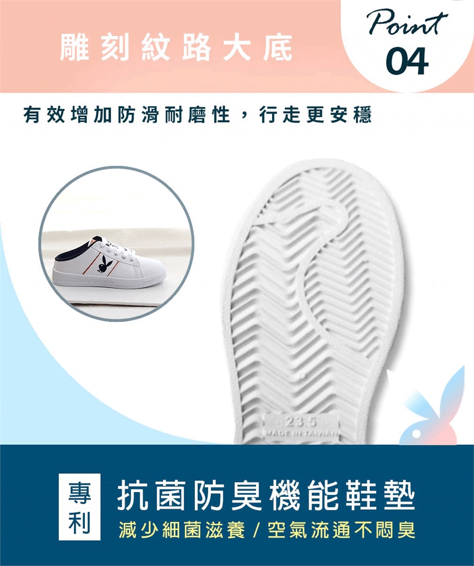 PLAYBOY承襲美式時尚潮流 產地:臺灣 鞋面材質:PVC+超纖 內裡材質:網布 大底材質:PVC 跟高:3.5 cm 版型:正常 |