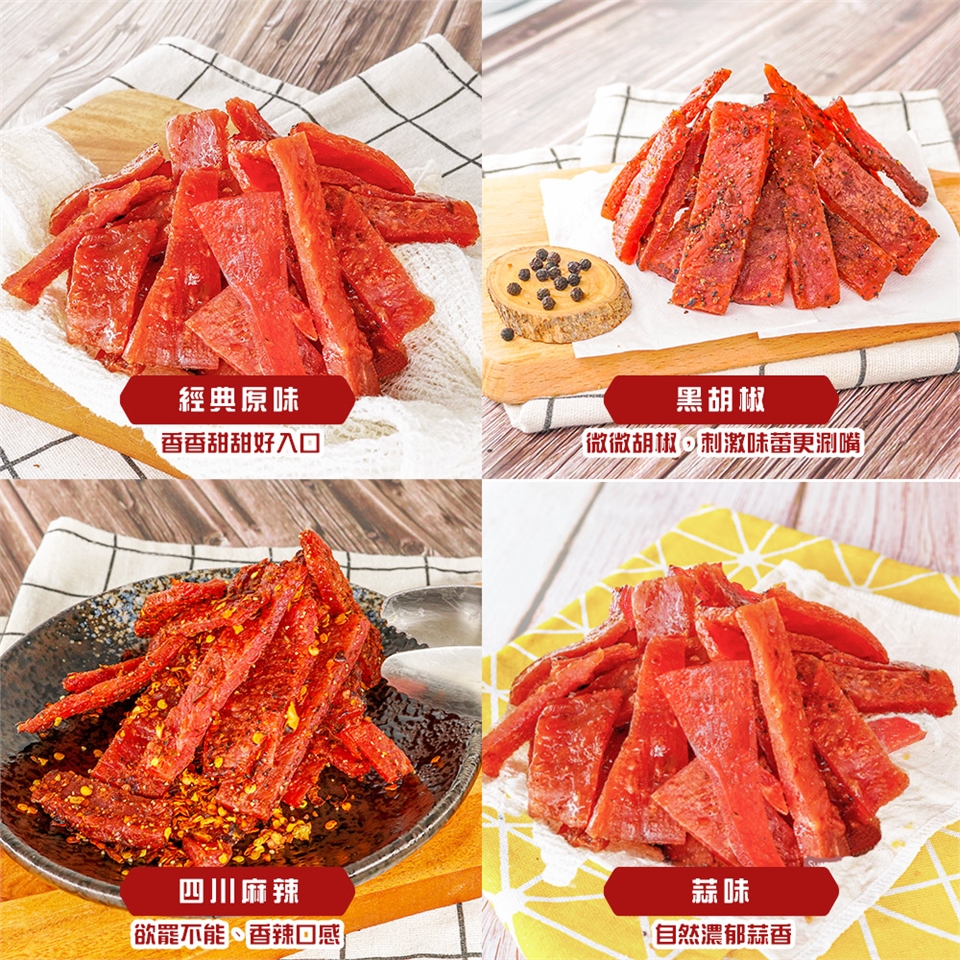 產品名稱 ► 豬肉乾( 經典原味、黑胡椒、四川麻辣、蒜味)