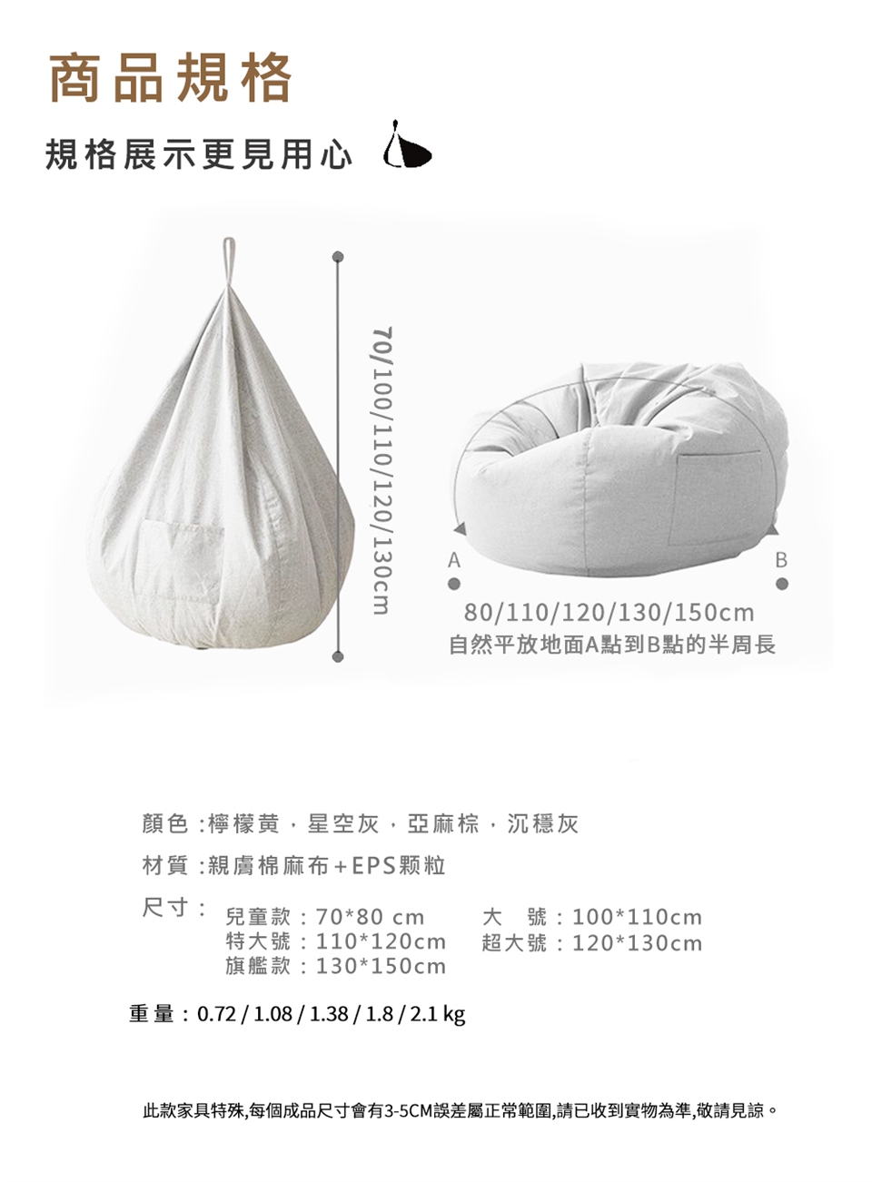 1. 商品尺寸因測量方式、收納方式不同,可能造成誤差,請以實際商品尺寸為主。