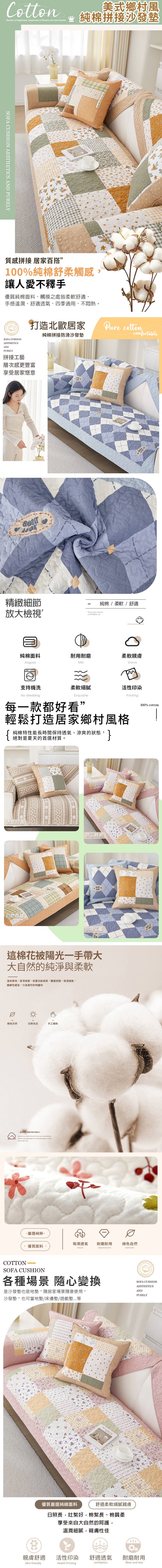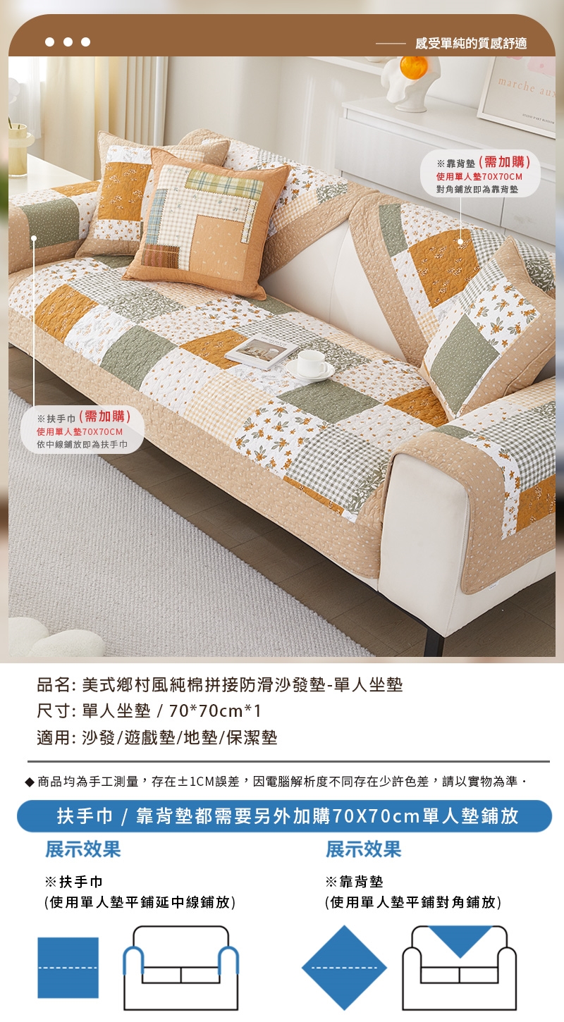 鄉村風純棉拼接透氣舒適防滑沙發墊_單人坐墊