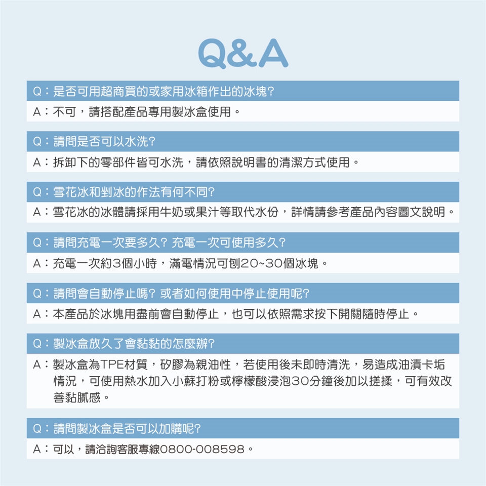 .內建超長續航力鋰電池,一次可榨20~30顆冰磚。