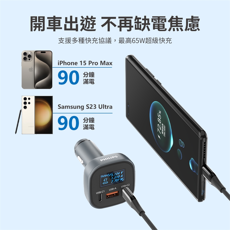 單口USB-C極速65W快充,Android、iPhone均可快充