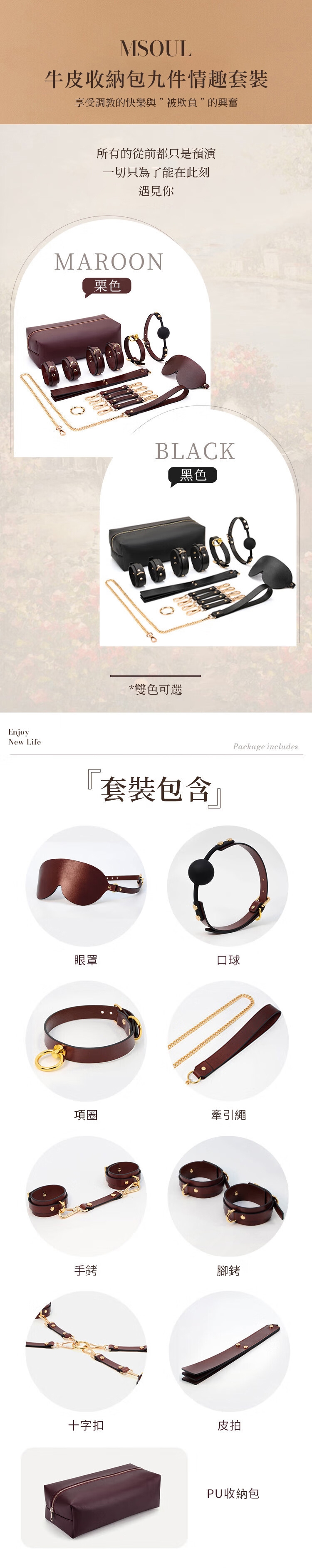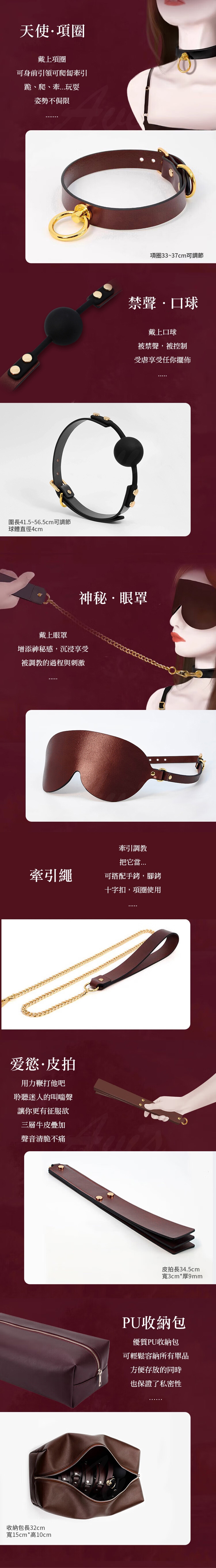 眼罩、口球、項圈、牽引繩、手銬、 腳銬、十字扣 、皮拍、PU收納包