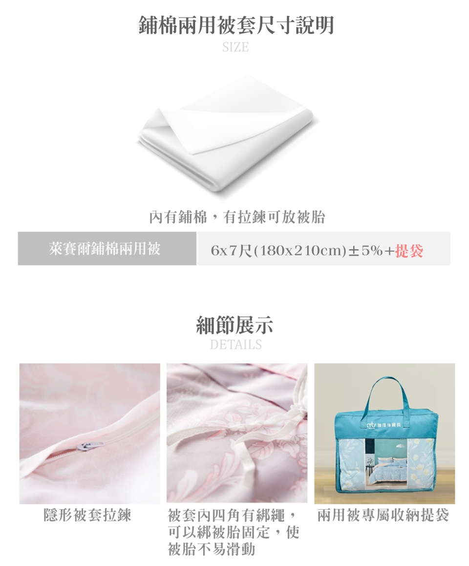 四季被-有鋪棉,但無拉鍊,無法加入被胎使用。