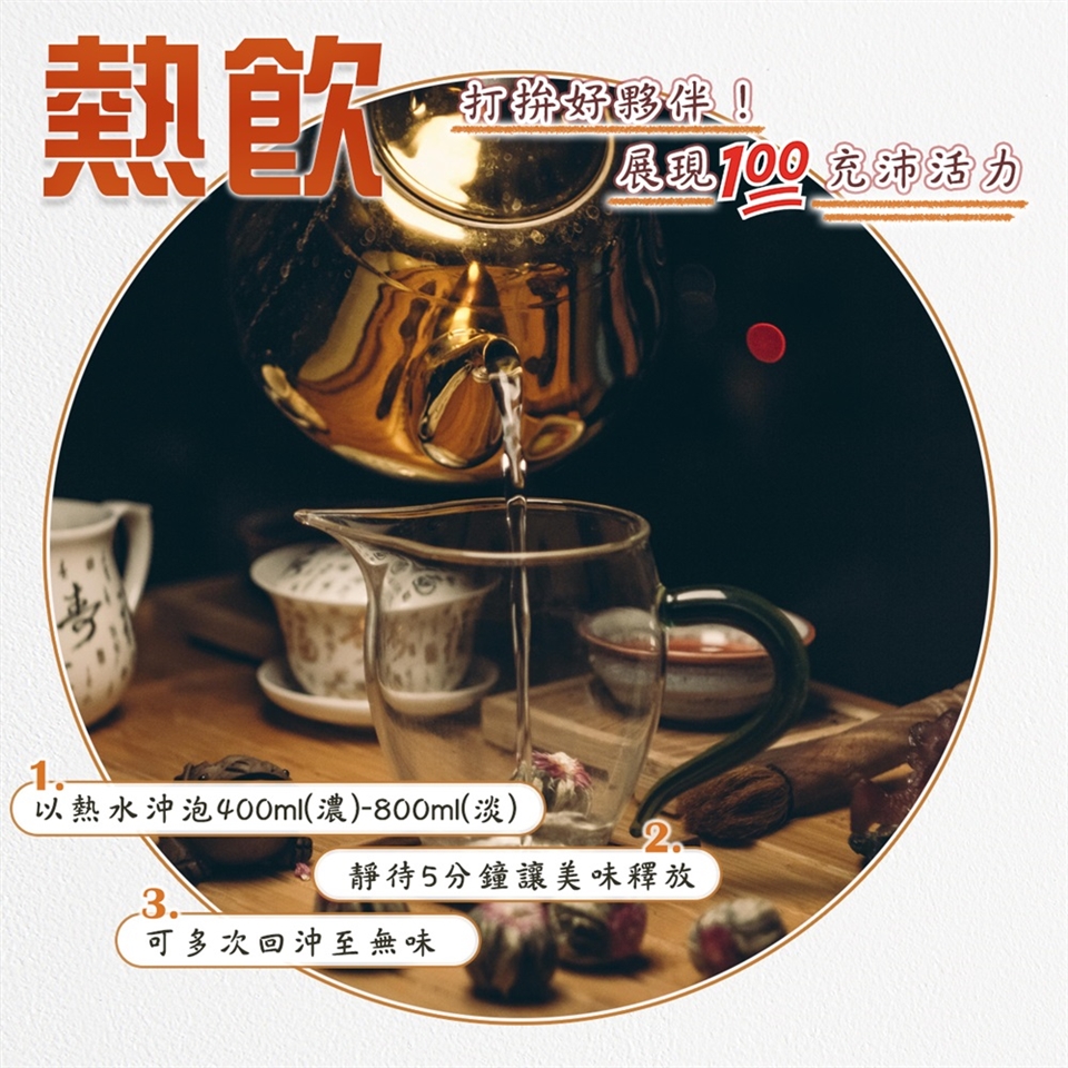 ※可依個人喜好,增減水量,調整濃淡,可多次沖泡至無味。