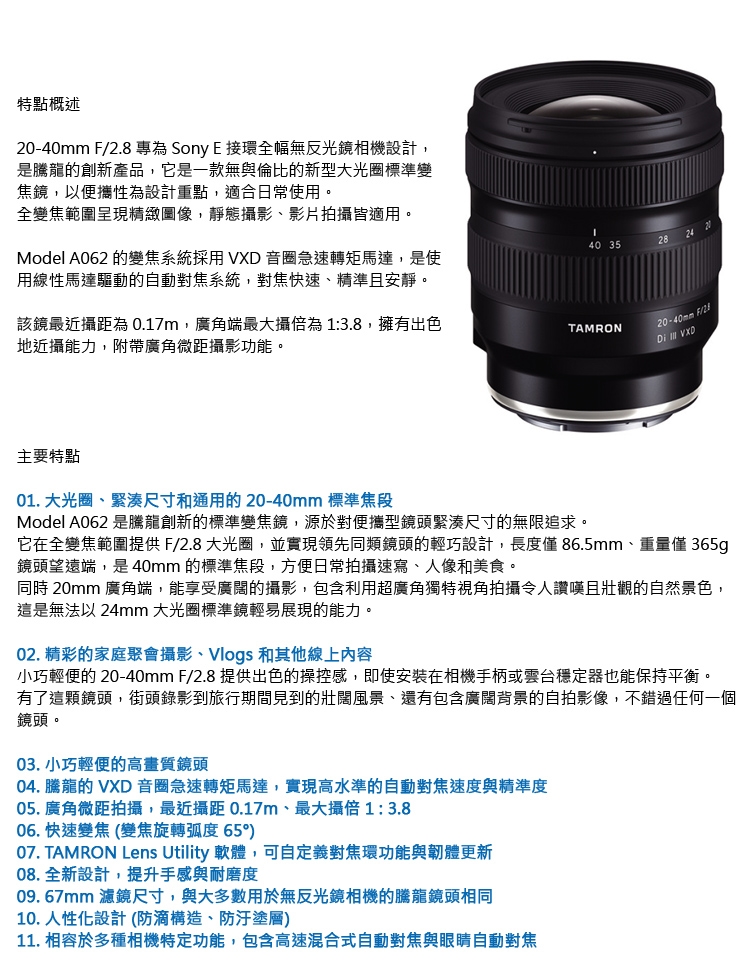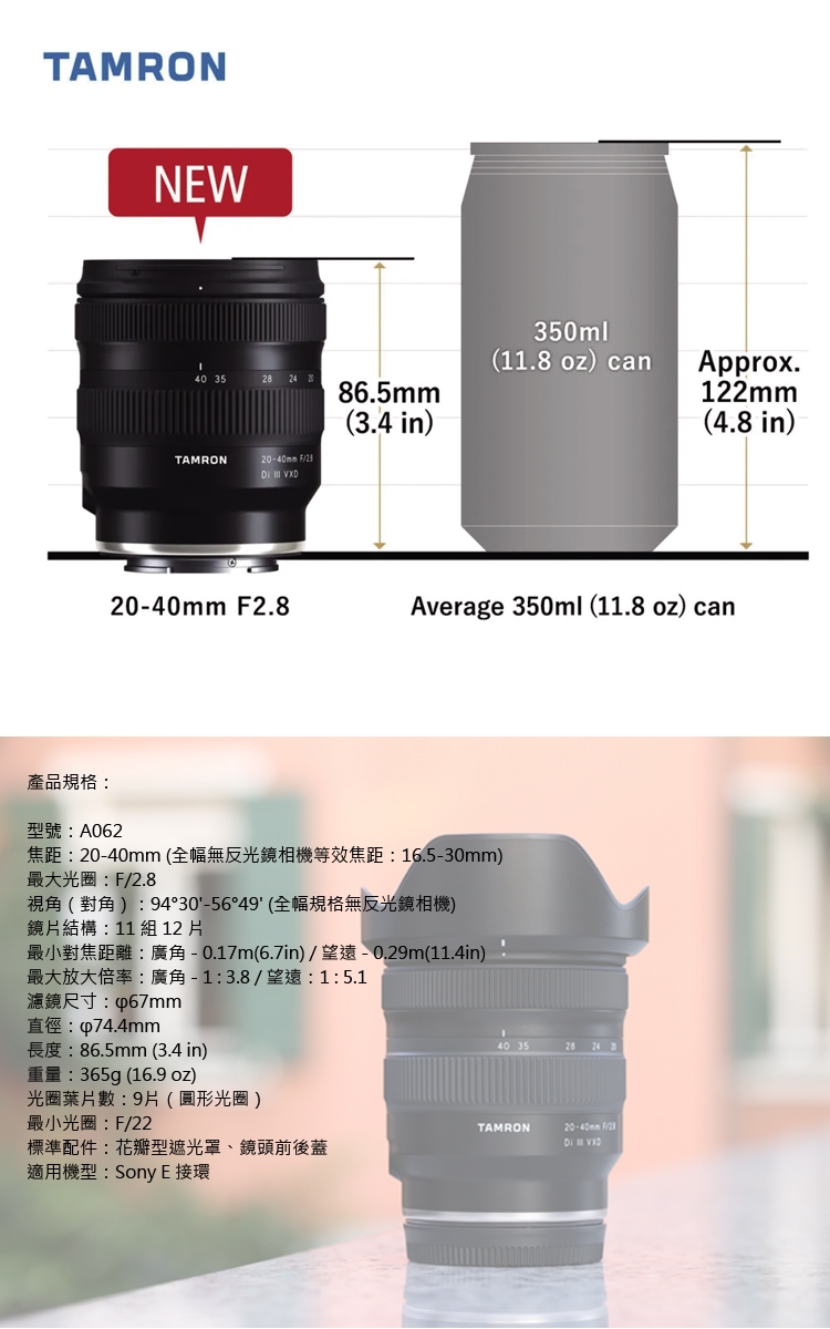 TAMRON 公司貨享有12個月保固。 詳細以官網公告為主http://www.tamron.com.tw/home.html 《原廠服務專線 02-2321-8258》
