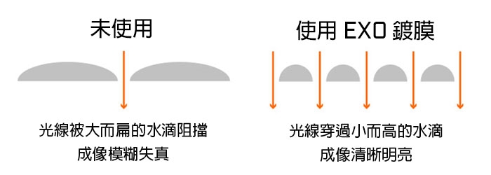 鏡片鍍膜:EXO Barrier 超潑水屏障防護鍍膜、Fully-Multi-Coated 全覆式多層鍍膜