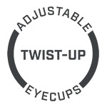 目鏡採高眼點設計,良視距離為 16mm,目鏡口徑加大至 22mm,可輕易獲得清晰明亮的視野,適合佩戴眼鏡的使用者。未佩戴眼鏡的使用者可將眼罩旋出,共有二段式調整,可依個人習慣與眼位輕靠眼窩進行最舒適的觀察。右側目鏡為讀數焦距調整,可依照個人視覺狀況調整為最清晰的 LCD 標線讀數;左側目鏡具有視差調整環,可視不同使用者或左右兩眼視差進行調整,調整為最清晰銳利的成像。