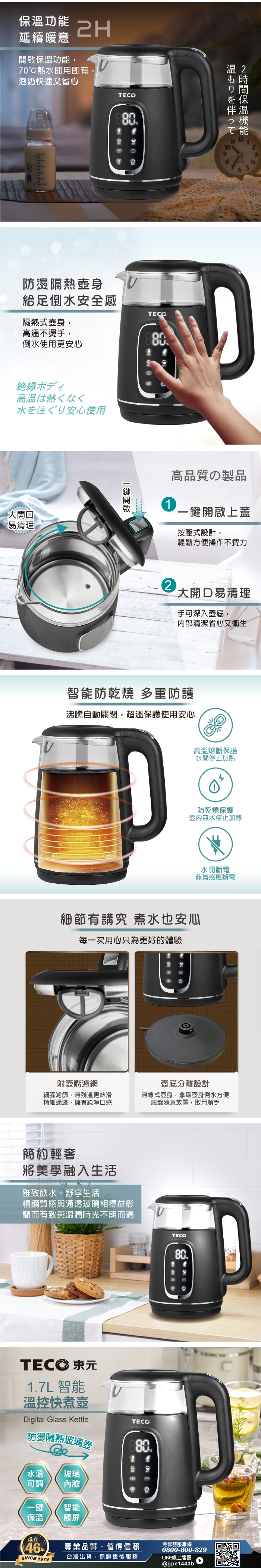 【TECO東元】智能溫控玻璃電熱快煮壺
