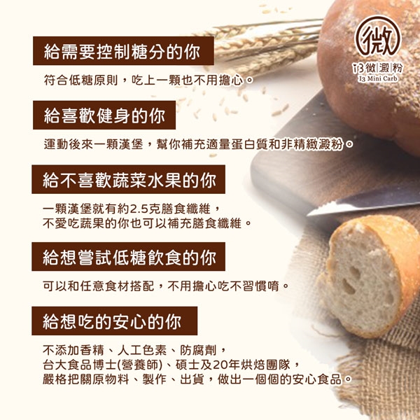 i3微澱粉-低糖好纖手工麵包-原味小漢堡-適用對象