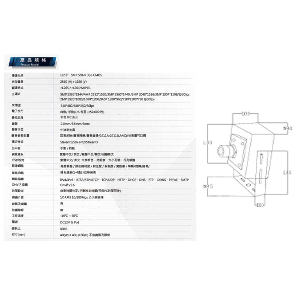 -1/2.8”5MP SONY 335 CMOS 網路攝影機