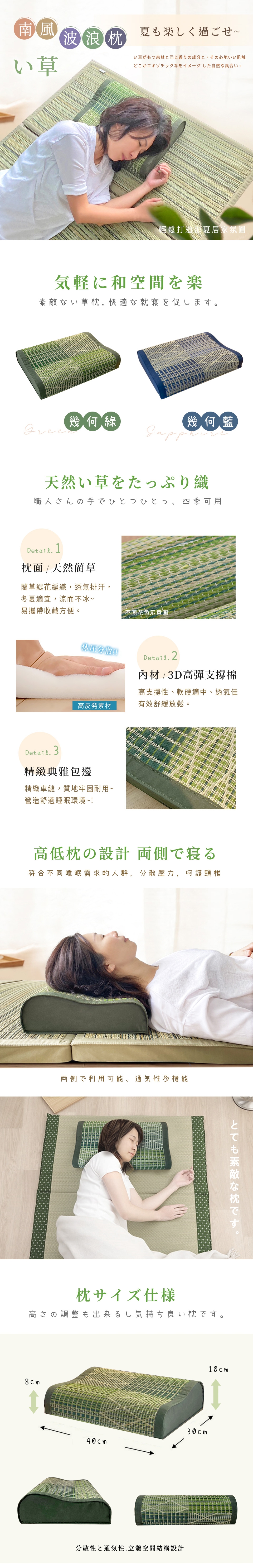 BELLE VIE 南風藺草波浪枕 40x30cm (兩色任選) 榻榻枕 / 日式涼枕 / 露營可用