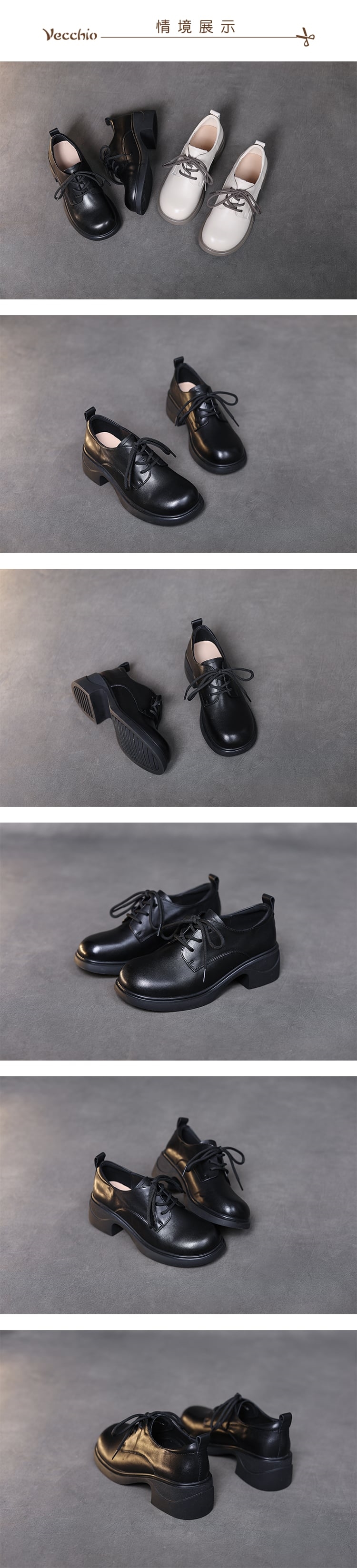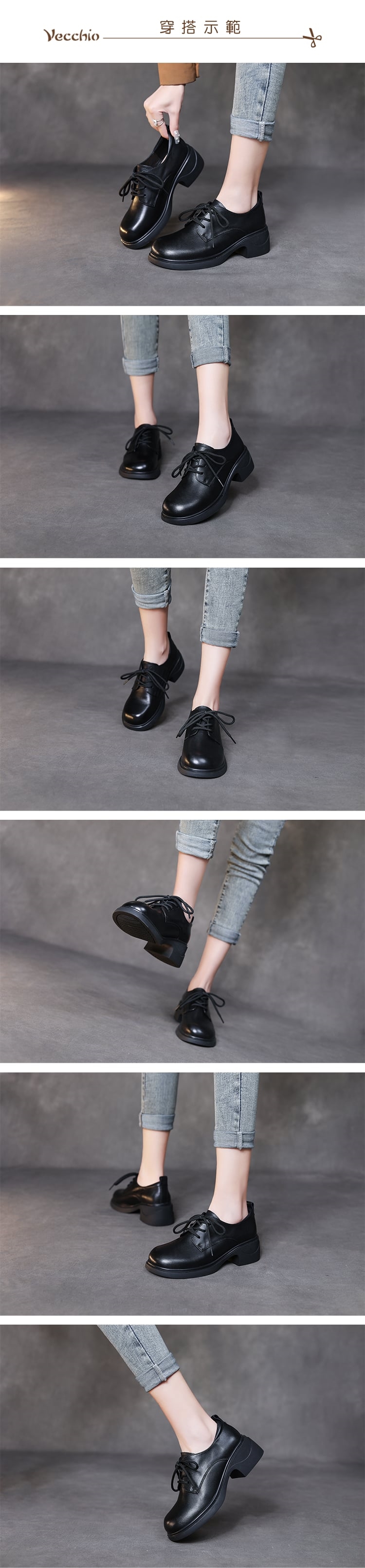 【VECCHIO】全真皮牛津鞋/全真皮頭層牛皮寬楦繫帶百搭經典牛津鞋 女鞋 黑