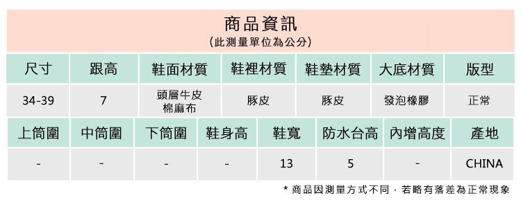 2.鞋類商品依功能及用途之不同,鞋底各有其止滑係數之個別不同,使用鞋類商品請用於正常平坦之路面,非雨鞋或雨靴類商品,請避免穿著於下雨濕滑路面上行走。