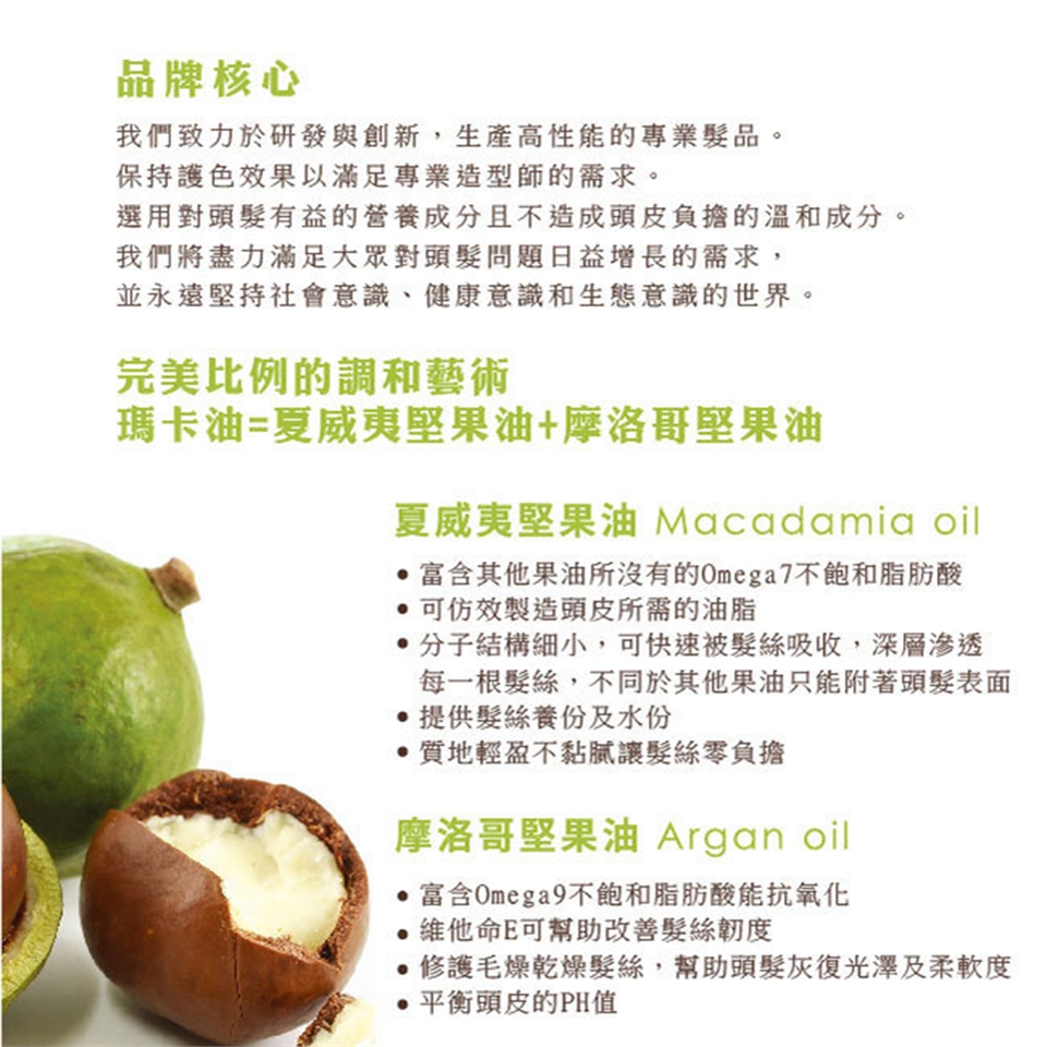 依照頭髮長度取適量於手掌上均勻搓揉後,將瑪卡油從髮中至髮尾塗抹,可於乾髮或濕髮吹乾前使用
