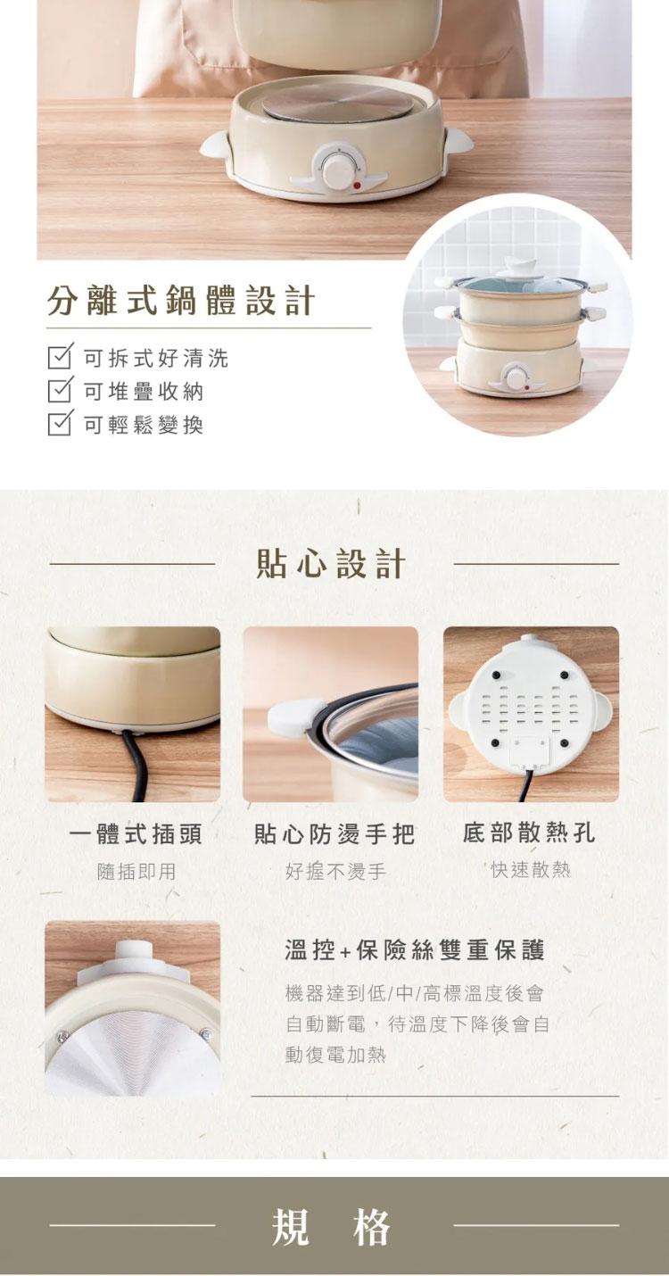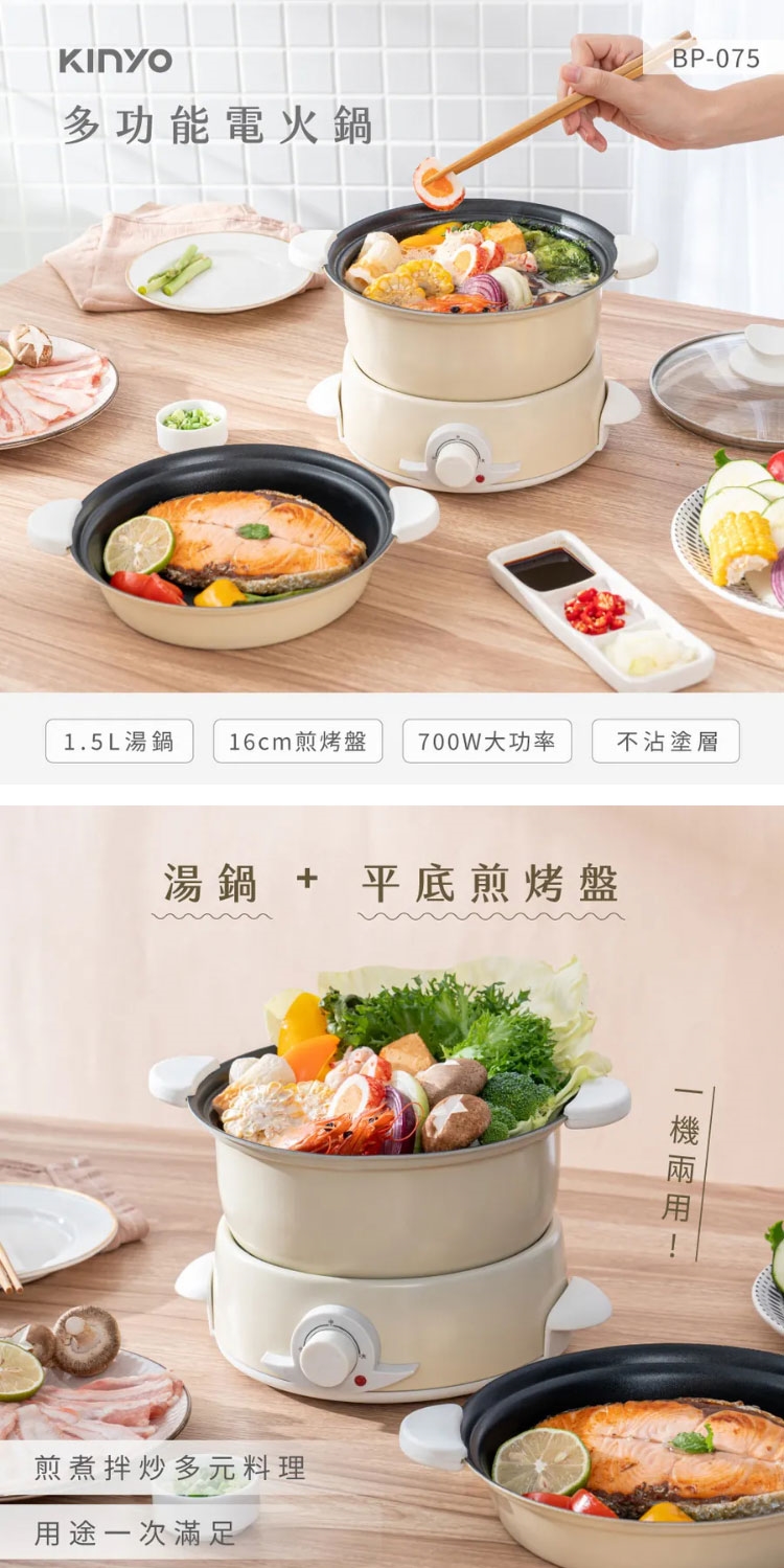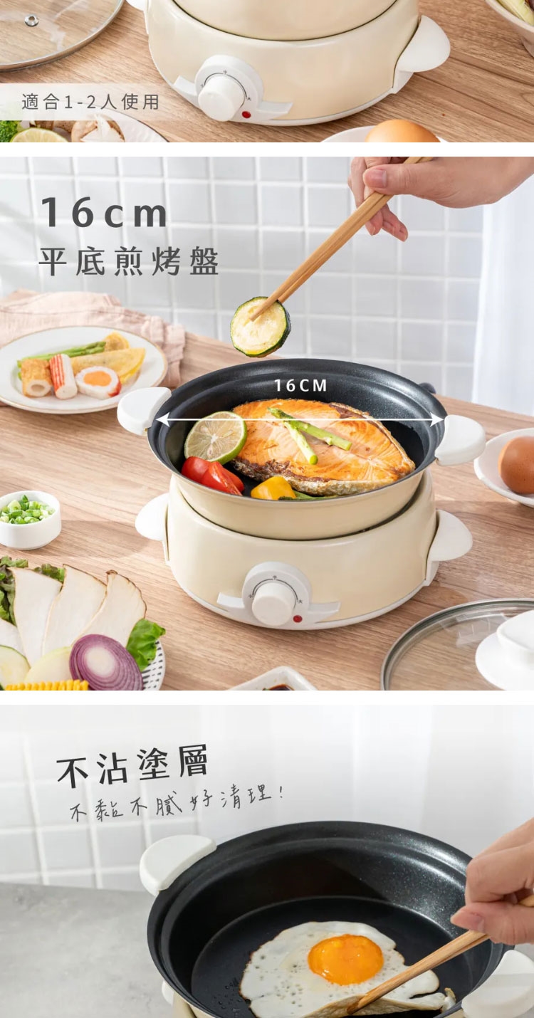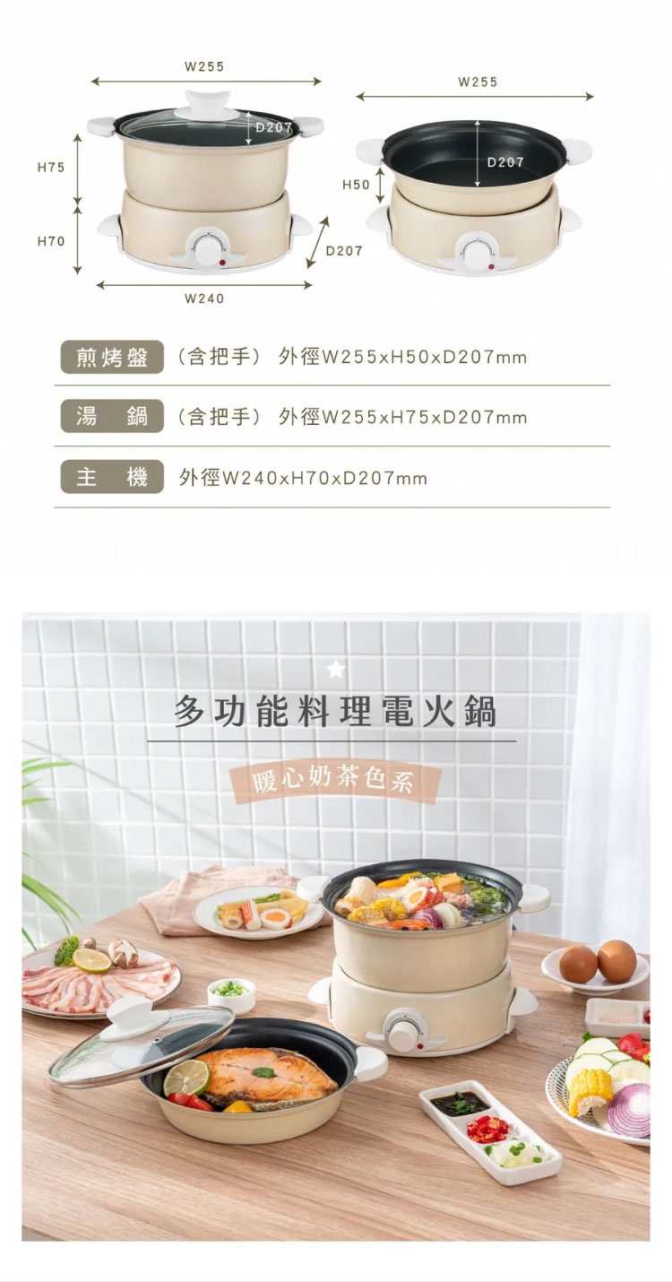 ★ 湯鍋+平底煎烤盤,一機兩用,可拆式輕鬆變換