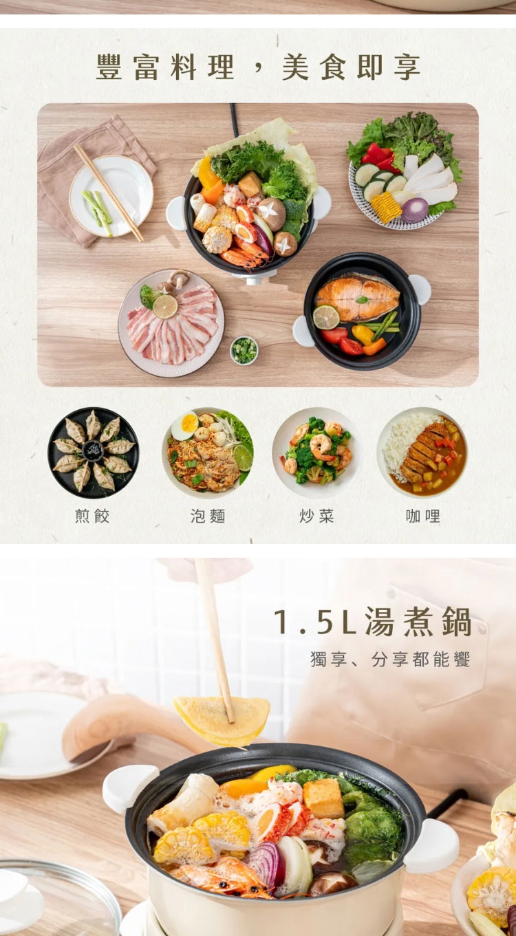 ◆ 湯鍋+平底煎烤盤,一機兩用,可拆式輕鬆變換