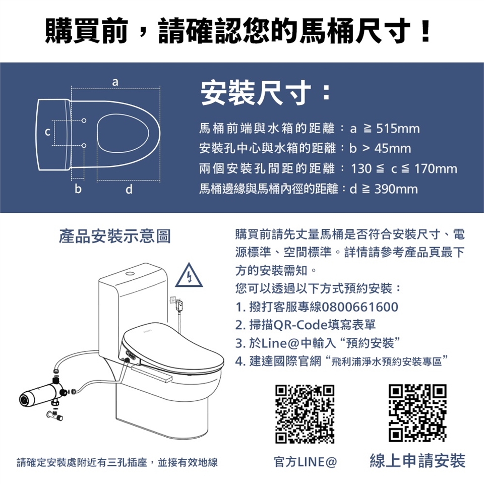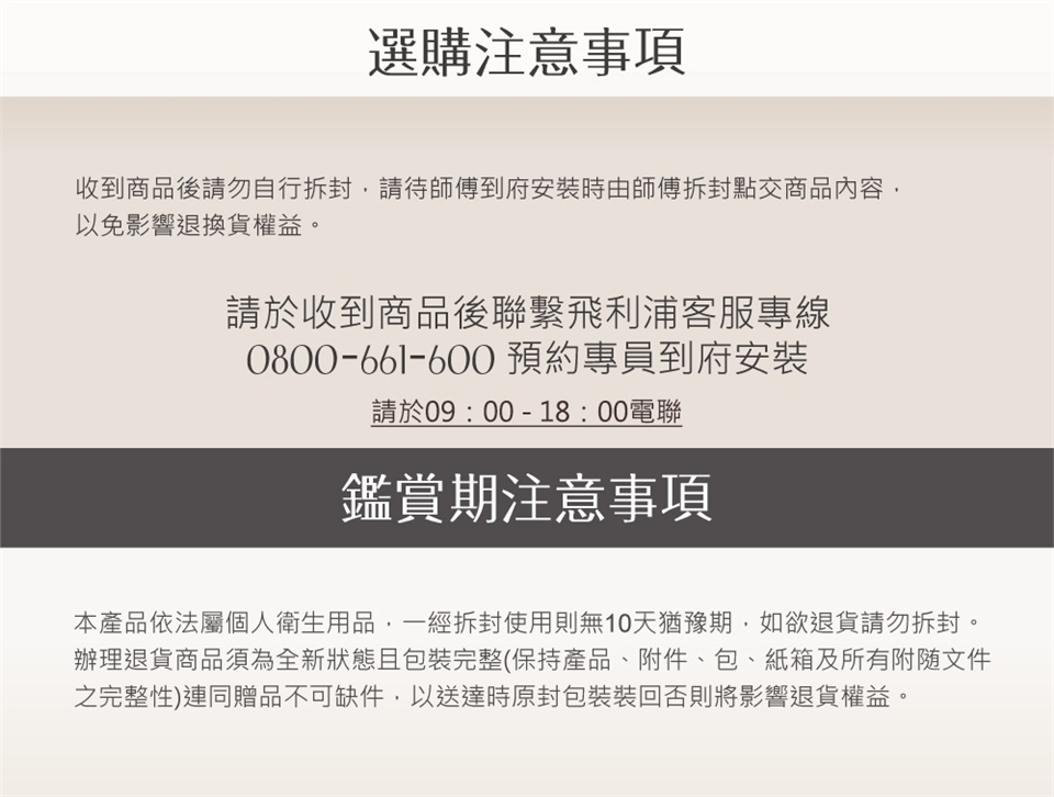 ※對於商品資訊及安裝有任何疑問歡迎先撥打客服線諮詢,飛利浦客服專線:0800-661-600