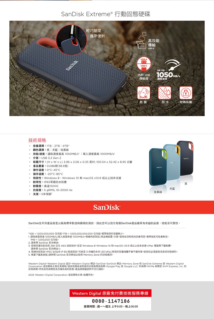 ◎ 型號:Sandisk E61 1TB 行動固態硬碟-夜幕綠