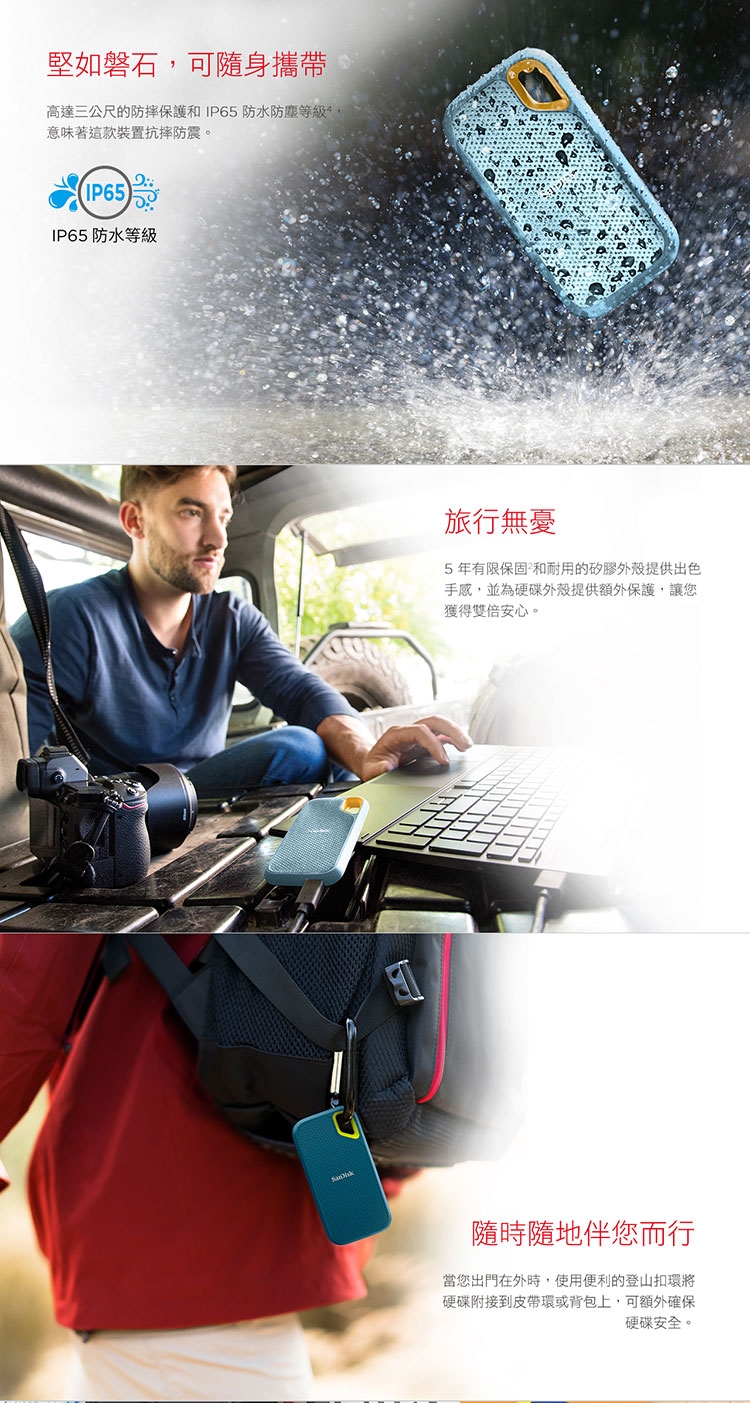 ★ 便利的登山扣環,可將硬碟固定到皮帶環或背包上