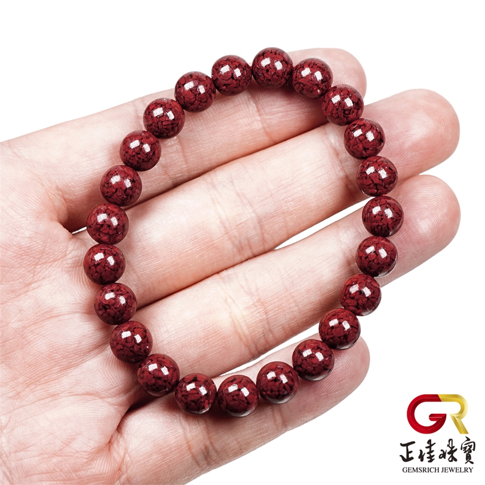 主角:原礦晶體硃砂 7.7-8.2mm 晶體砂 硃砂手珠|日本彈力繩