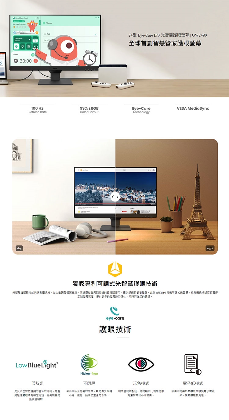 ★ 獨家專利可調式光智慧護眼技術