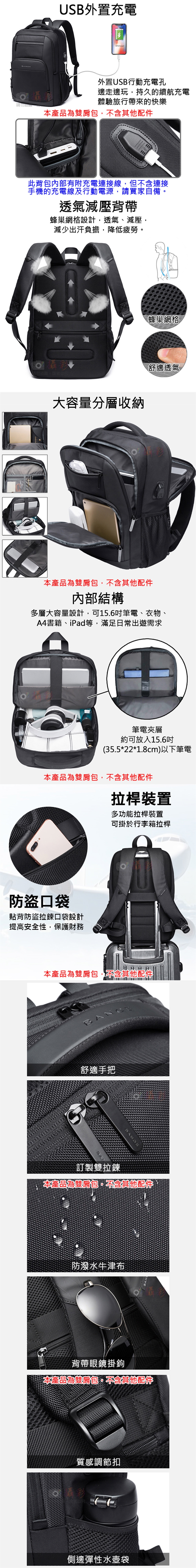 備註:此背包內部有附充電連接線,但不含連接手機的充電線及行動電源,請買家自備。