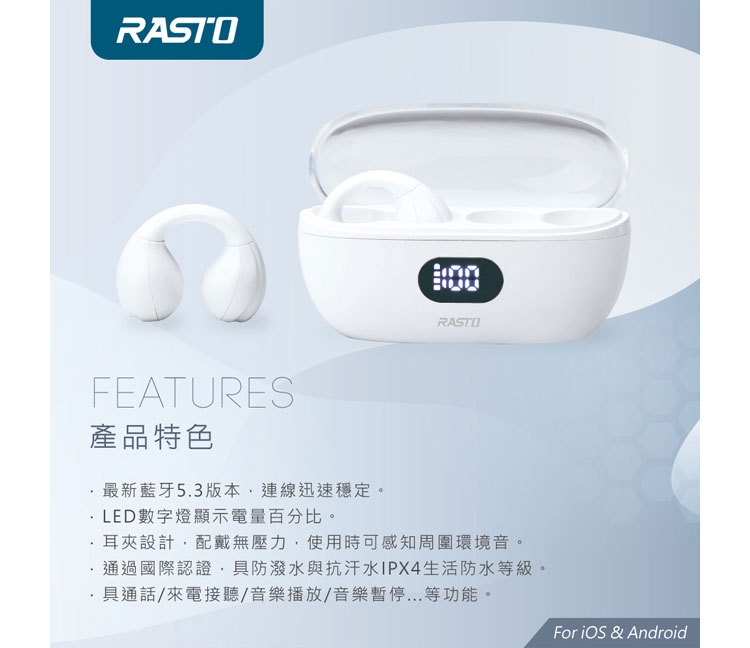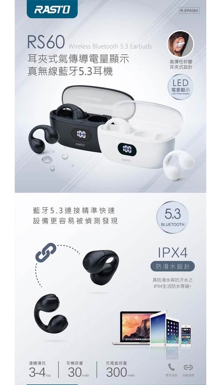 約2h / 充滿電LED顯示100%(充電盒)